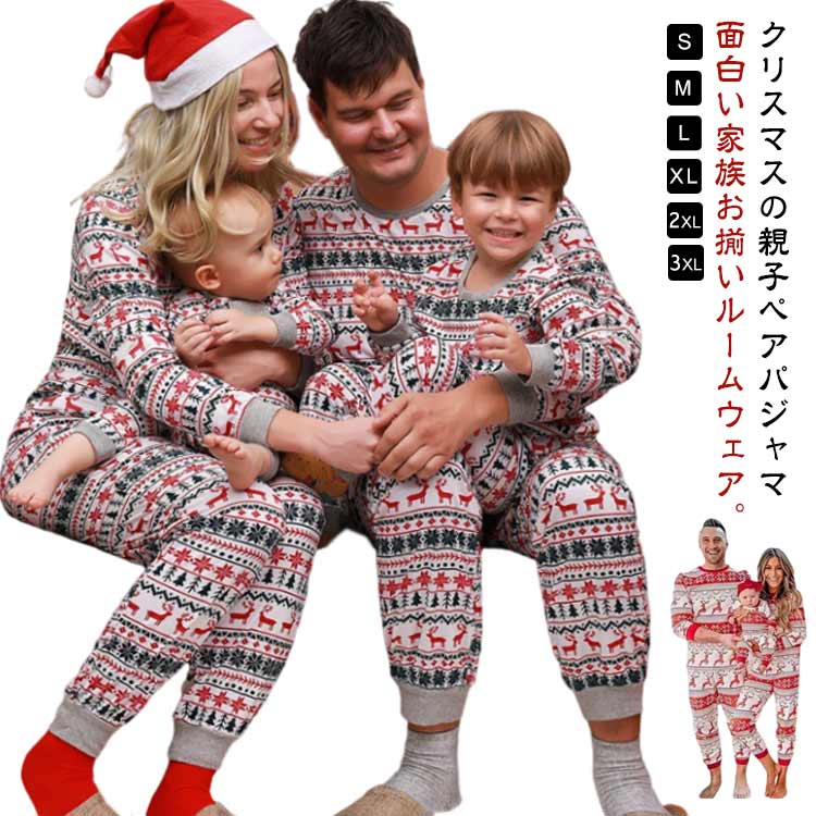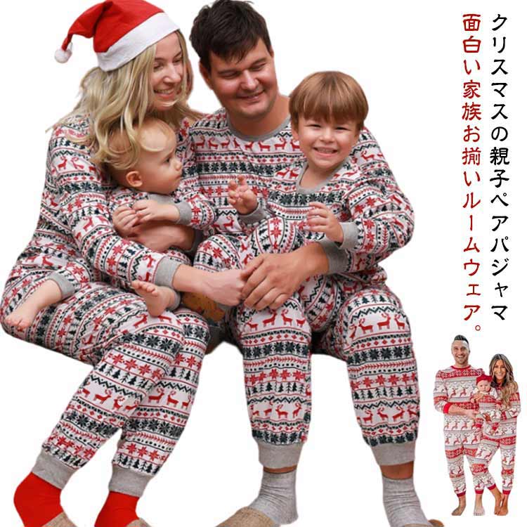 親子ペア パジャマ クリスマス ルームウェア 親子お揃い 家族 サンタ パジャマセット 長袖 メリークリスマス 親子ペアルック カップル 子ども 寝巻き 家族お揃い 部屋