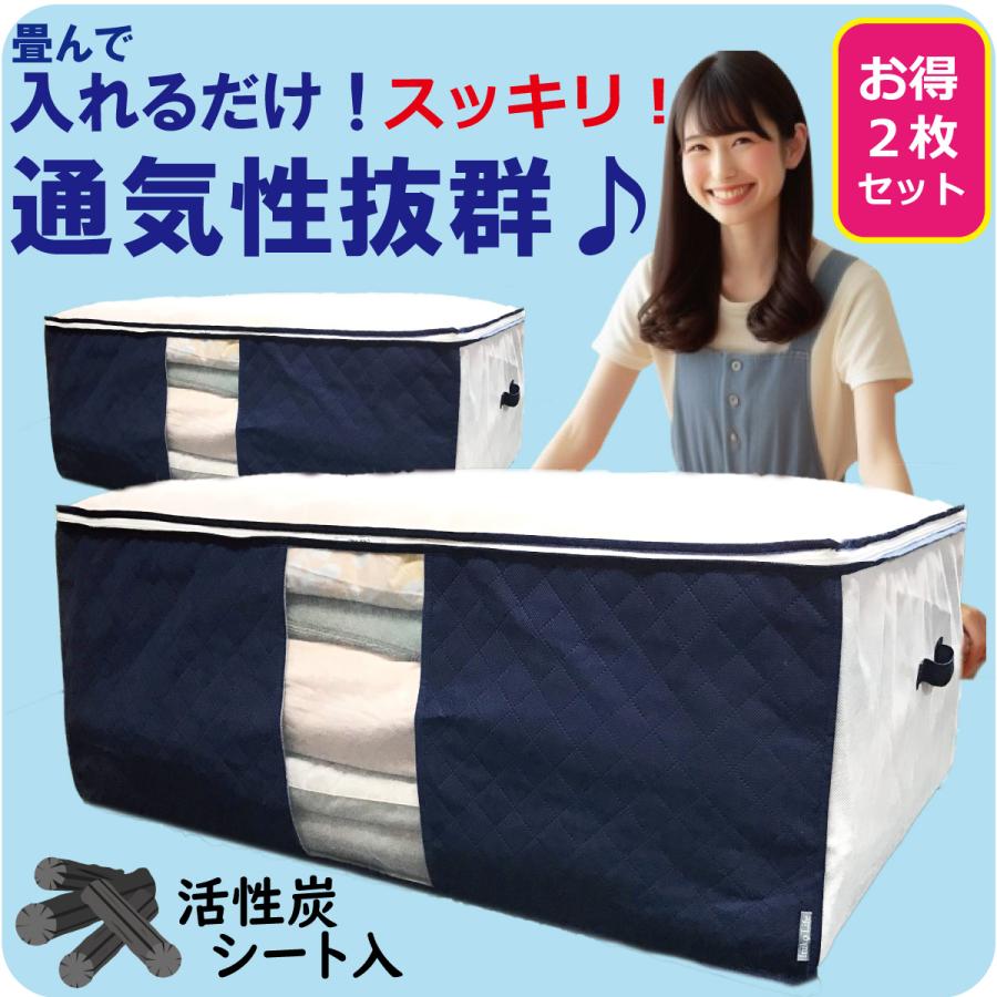 布団収納袋 特大 2枚組 布団袋 活性炭シート入 収納ケース 掛け 敷き布団 をまとめてスッキリ クローゼット 押し入れ 持ち手 透明窓付 通気性抜群 不織布製