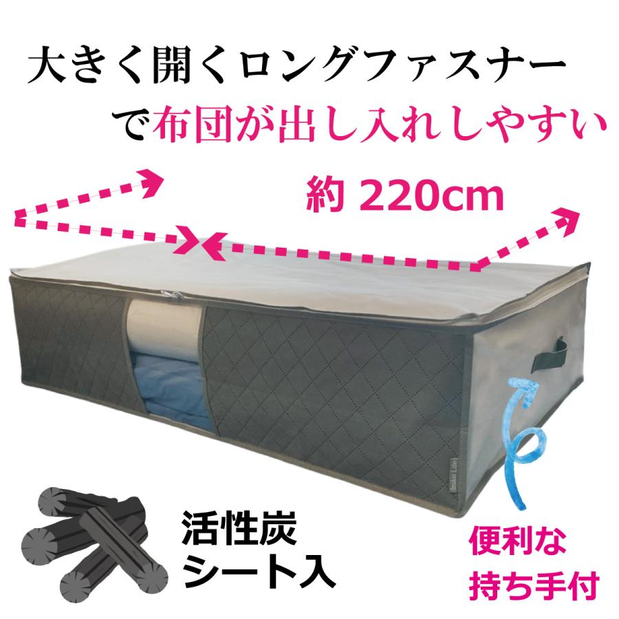 布団収納袋 敷き布団 用 活性炭シート入 シングル - シングルロング 収納ケース 敷き布団をスッキリ収納 大きいファスナー 持ち手 透明窓付 通気性抜群 グレー