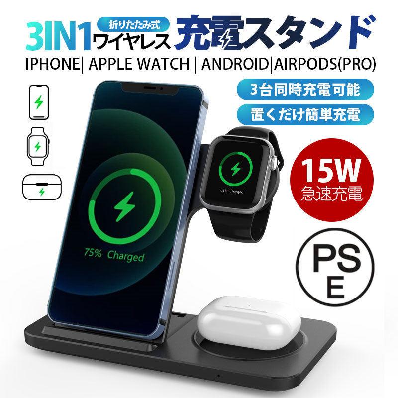 ワイヤレス充電器 iphone 3in1 ワイヤレス 充電器 最大15w 折り畳み式 iPhone Android アンドロイド ワイヤレスチャージャー 充電スタンド Qi充電