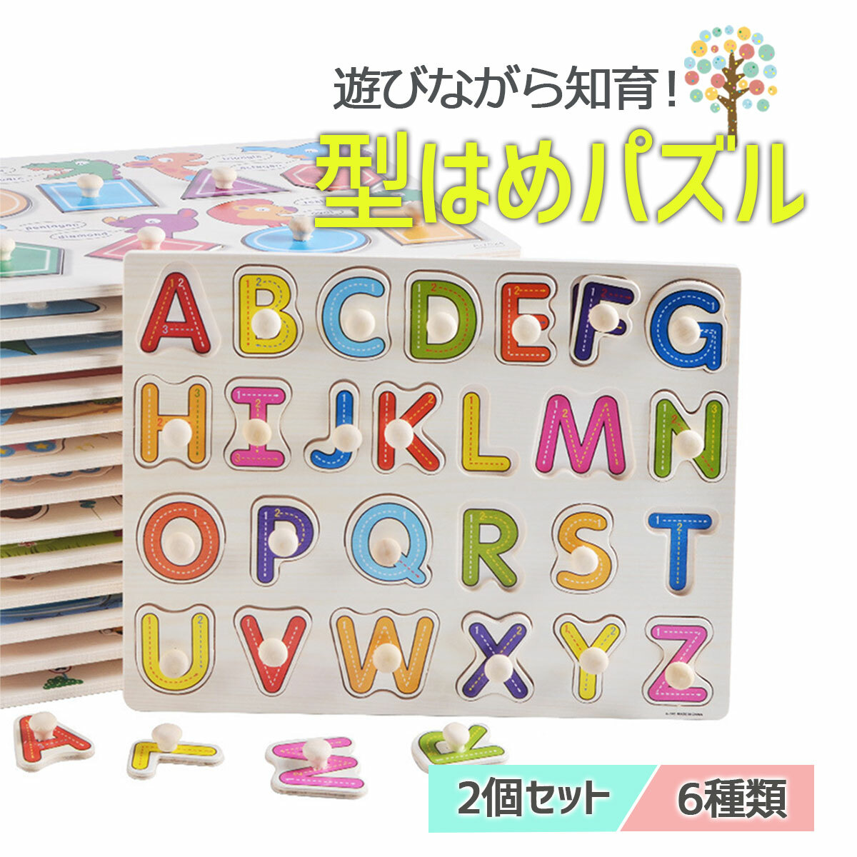 型はめパズル 木製 木のおもちゃ アルファベット 数字 のりものおもちゃ 知育玩具 学習玩具 知育パズル