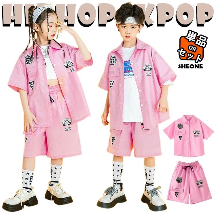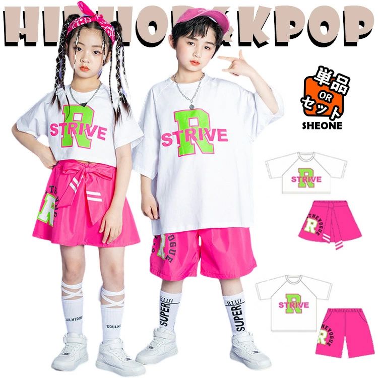 ピンク 白 半袖 キッズ ダンス衣装 セットアップ 男の子 女の子 子供 チア チアガール トップス スカート ショートパンツ ダンスウェア ヒップホップ ジャズダンス ポッピング 韓国