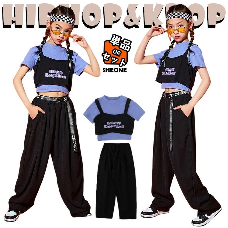 半袖 夏 キッズ ダンス衣装 セットアップ パンツ トップス へそ出し カジュアル シャツ ロングパンツ カジュアルシャツ ダンスウェア ヒップホップ ジャズダンス ポッピング 韓国