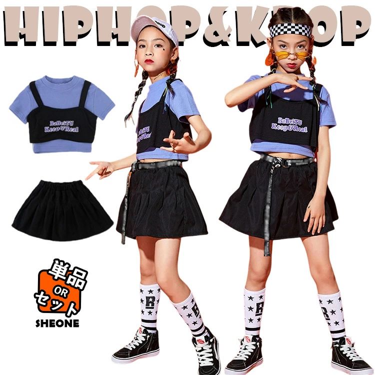 半袖 夏 キッズ スカート ダンス衣装 セットアップレトロ カジュアル シャツ カジュアルシャツ トップス ダンスウェア ヒップホップ ジャズダンス ポッピング 韓国 演出服 練習着 団
