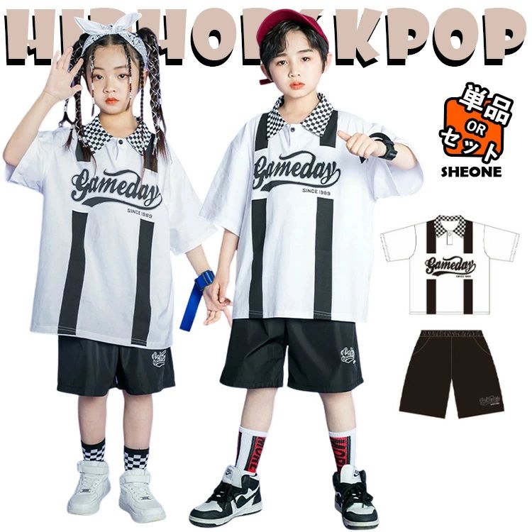 白 黒 半袖 夏 キッズ ダンス衣装 セットアップ 男の子 女の子 トップス ショートパンツ ダンスウェア ヒップホップ ジャズダンス ポッピング 韓国 演出服 練習着 団体服 応援団 個性