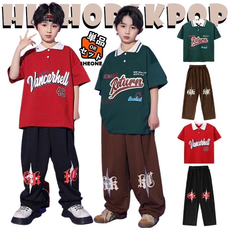 赤 緑 キッズ ダンス 衣装 発表会 レトロ サルエルパンツ ヒップホップ 韓国 ダンス衣装 セットアップ 半袖 tシャツ トップス ブラック ロングパンツ ゆったり ストリート オシ