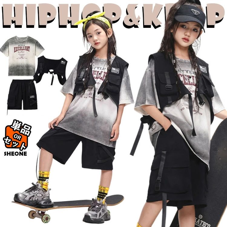 灰 グレー ホワイト トップス シャツ タンクトップ 半ズボン パンツ 上下セット セットアップ 3点セット カジュアル シャツ 白シャツ 袖無し 半袖 男の子 女の子 キッズ ダンス衣装