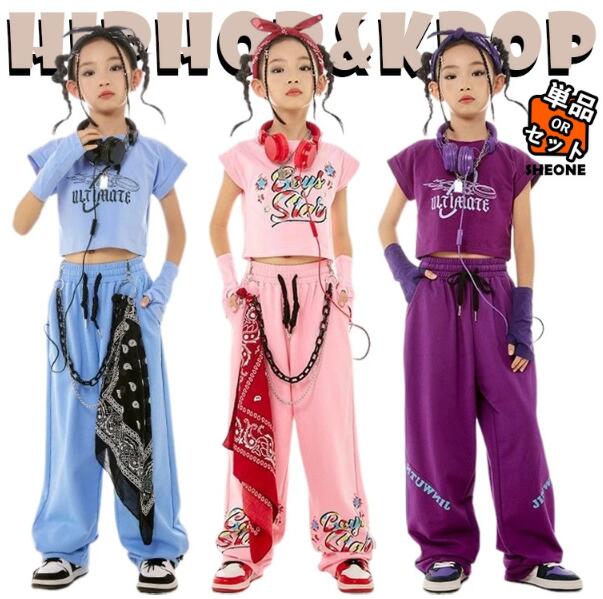紫 青い ピンク へそ出し カーゴパンツ キッズ ダンス衣装 セットアップ 子供 カジュアル ショートトップス タンクトップ ロングパンツ ジャズダンス ヒップホップ チアガール チア