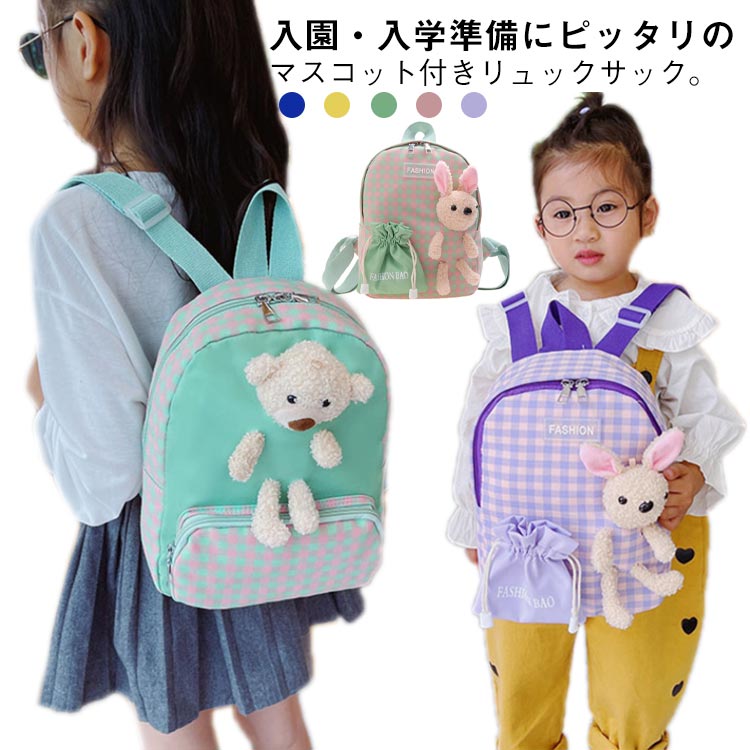 遠足や通園に最適なキッズ用リュックサック くま うさぎ ぬいぐるみ付き キッズ リュックサック 通園バッグ 幼稚園 保育所 バックパック 幼児バッグ 子供 リュック プレゼント