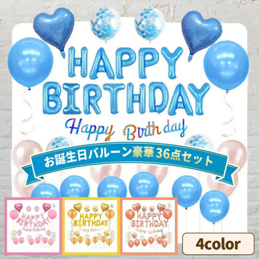 バルーン 誕生日 飾り付け 風船 お祝い アルミ happy birthday ゴールド ピンク ブルー 大きい おしゃれ ハート プレゼント テープ セット