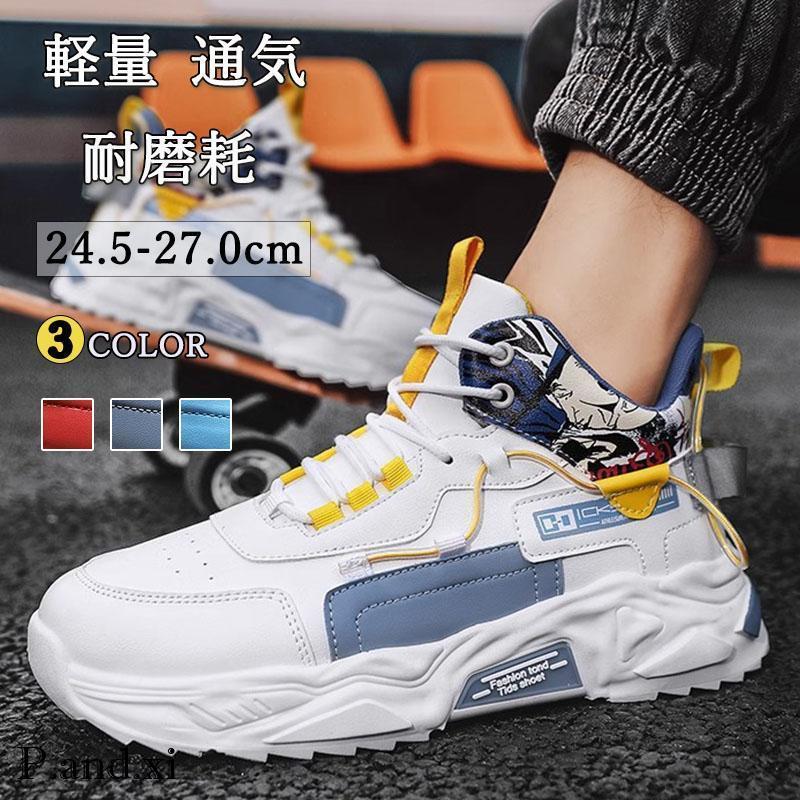 スニーカー メンズ ハイカット かっこいい 幅広 軽量 エアー ランニングシューズ 厚底 ウォーキングシューズ おしゃれ メンズシューズスニーカー シューズ ファッション スポーツ 軽い