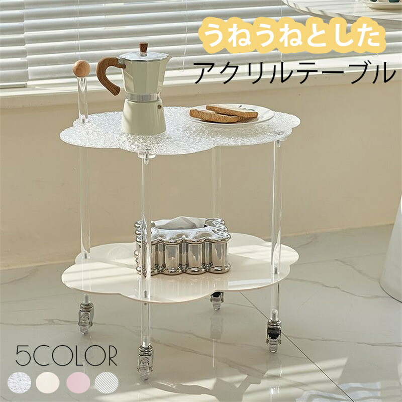 アクリルテーブル サイドテーブル うねうねサイドテーブル 2層インテリア 寝具 収納 テーブル サイドテーブル ナイトテーブル