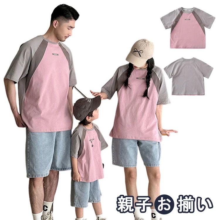 リンクコーデ 親子 セット シャツ 半袖 ピンク 灰色 親子 ペアルック ペアシャツ 子供 ハハ パパ 親子コーデ トップス 姉妹 兄弟 家族旅行 家族活動 お揃い服 子供服 シャツ 男の