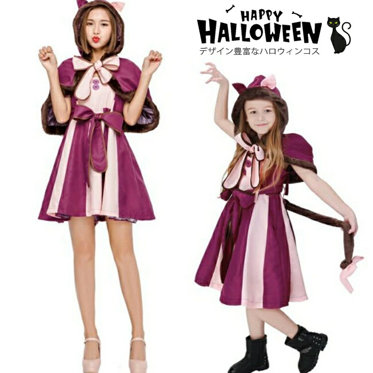 チェシャ猫 ハロウィン衣装 コスプレ親子コスチューム 動物 コスプレ衣装 コスチューム 女の子 キッズ メイド服 子供 アリスワンピース ドレス