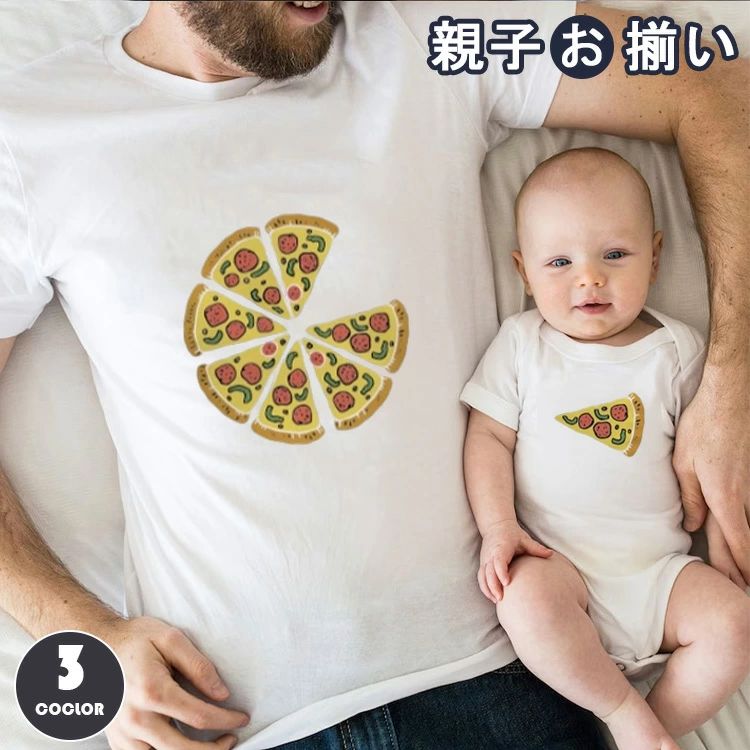 親子 ペアルック tシャツ 半袖 リンクコーデ 親子 セット 赤ちゃん ロンパース ピザ おもしろ 親子 ペアtシャツ 子供 ハハ パパ ベビー 黒 白 親子コーデ トップス 家族旅行 家族活動