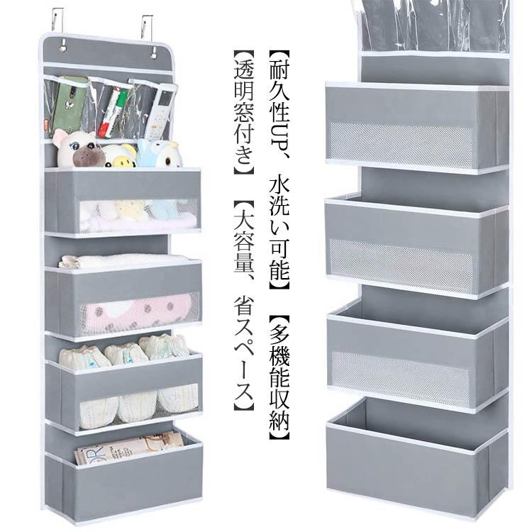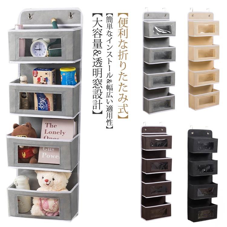 透明窓 小物収納 4段 クローゼット収納 ウォールポケット ドア掛け収納 型崩れしにくい 吊り下げ収納ポケット