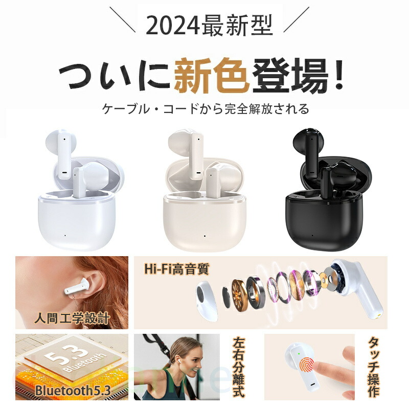 ワイヤレスイヤホンノイズキャンセリング 5.3 対応 自動ペアリング 高音質 対応 左右分離型 軽量