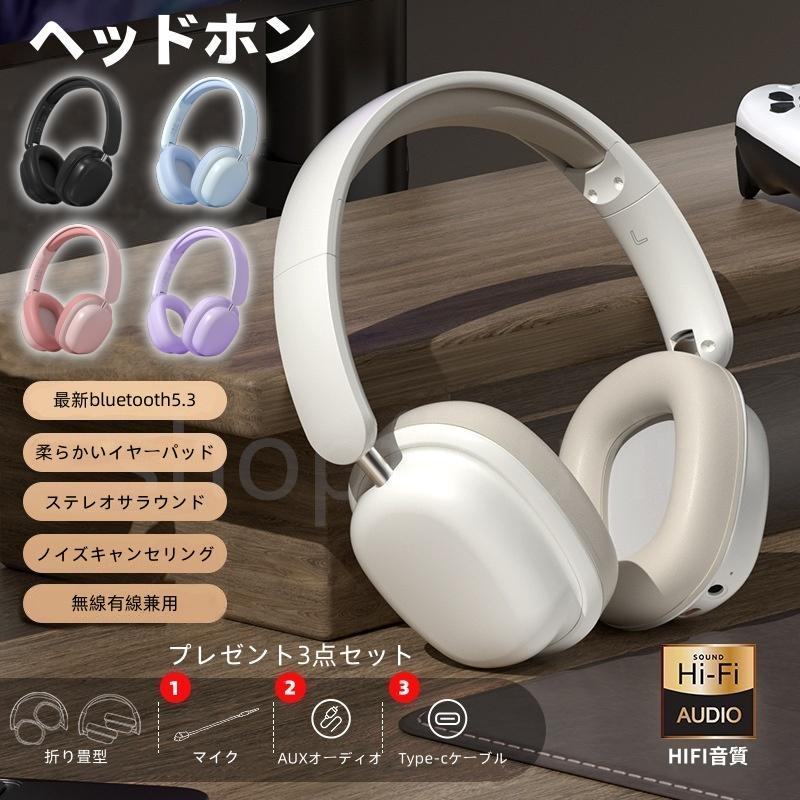 ワイヤレスヘッドホン イヤホン ヘッドセット Bluetooth5.3 ブルートゥースイヤホン マイク内蔵 クリア通話 HiFi高音質 ステレオサウンド ゲーミングイヤホン