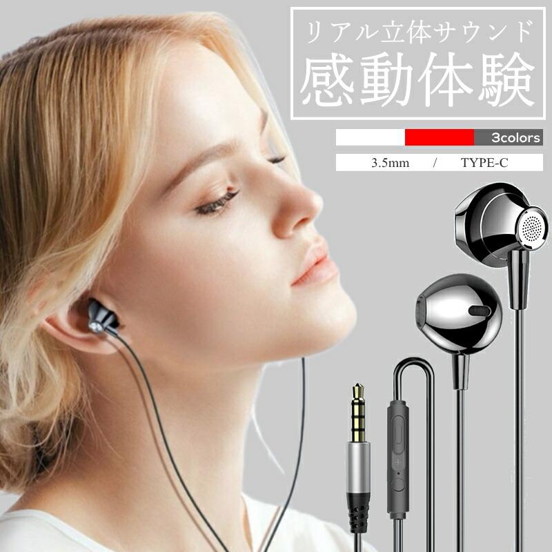 最新 3D立体サウンド スピーカー 有線イヤホンマイク 3.5mm TYPE-C iPhone iPad XPERIA GALAXY AQUOS Huawei OPPO タブレット ガラケー 携帯電話