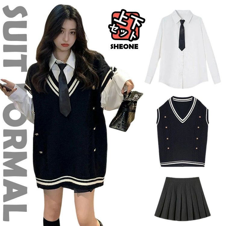 卒業式 スーツ 女の子 韓国 制服 ベスト セーター 高校生 なんちゃって 韓国 4点セット 高校生 卒服 女の子 レディース フォーマルスーツ 大きいサイズ ピアノ発表会 スーツ 子供服