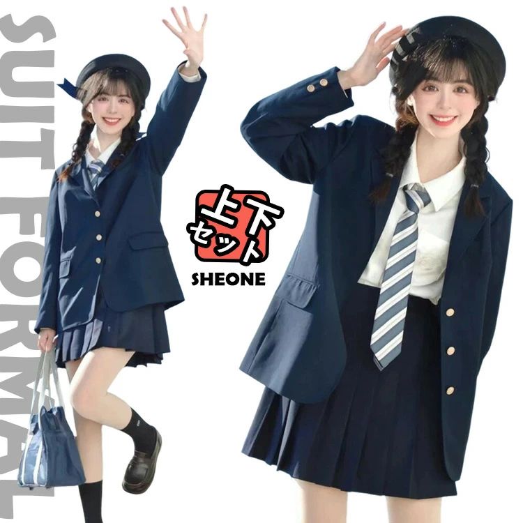 卒業式 スーツ 女の子 卒服 韓国 高校生 制服 紺青 入学式 スーツ 女子 学生服 中学生 小学生 可愛い フォーマルスーツ 大きいサイズ 中高生 3点セット 白シャツ ネクタイ スカート