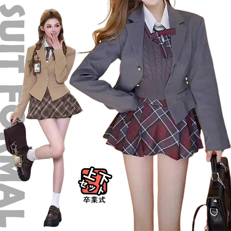 卒業式 スーツ 女の子 160 高校生 韓国 なんちゃって制服 ブレザー ジャケット プリーツスカート 中学生 入学式 卒服 ピアノ発表会 フォーマル レディース 女の子 無地 シンプル きれ