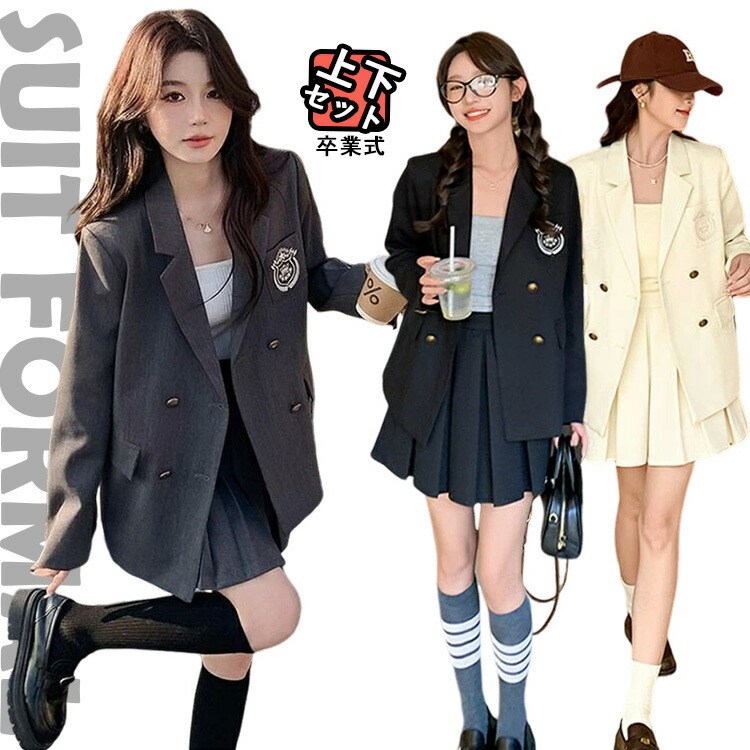 韓国 卒業式 スーツ 女の子 韓国 卒服 なんちゃって制服 ブレザー 女の子 フォーマル 高校生 中学生 ピアノ発表会 スーツ 入学式 ブラック ジャケット プリーツスカート 女の子 レデ