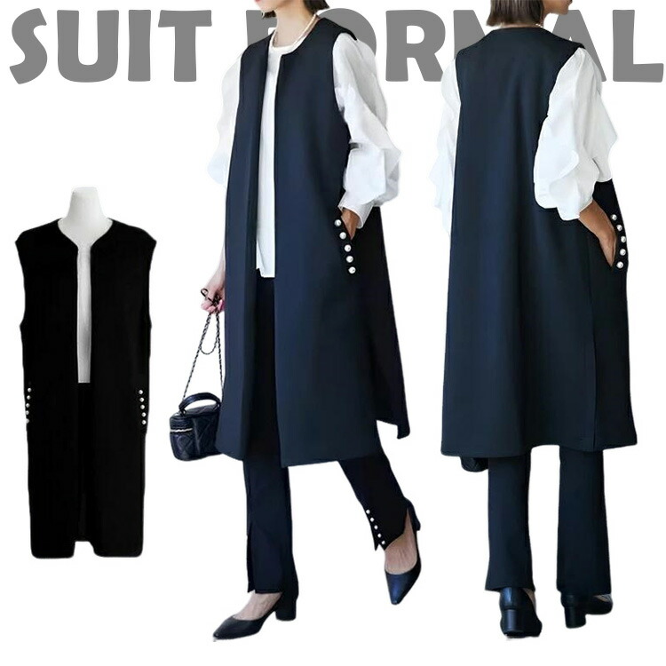 ベスト レディース ロング丈 パール ベスト ロング 紺色 黒 母 入学式 ママ 30代 40代 フォーマル ベスト きれいめ 洗える 着回し 卒業式 おしゃれ 羽織 スーツ 母親 入園式 大きいサ
