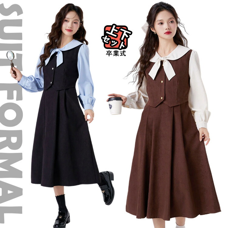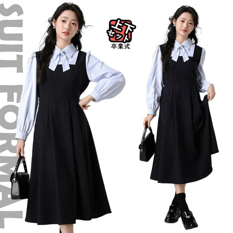卒業式 スーツ 女の子 ワンピース 卒服 小学校女子 中学生 長袖 ピアノ発表会 韓国 なんちゃって制服 紺色 茶色 高校生 入学式 ワンピーススーツ 演奏会 ドレス フェイクレイヤード