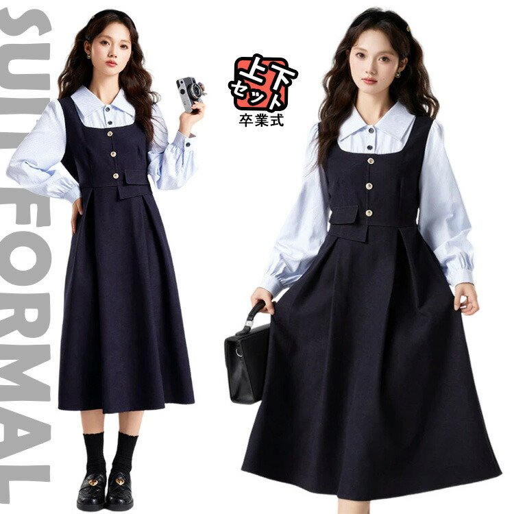 卒業式 スーツ 女の子 ピアノ発表会 ワンピース 卒服 韓国 なんちゃって制服 紺色 小学生 高校生 入学式 ワンピーススーツ ドレス 女子 中学生 長袖 演奏会 ドレス フェイクレイヤー