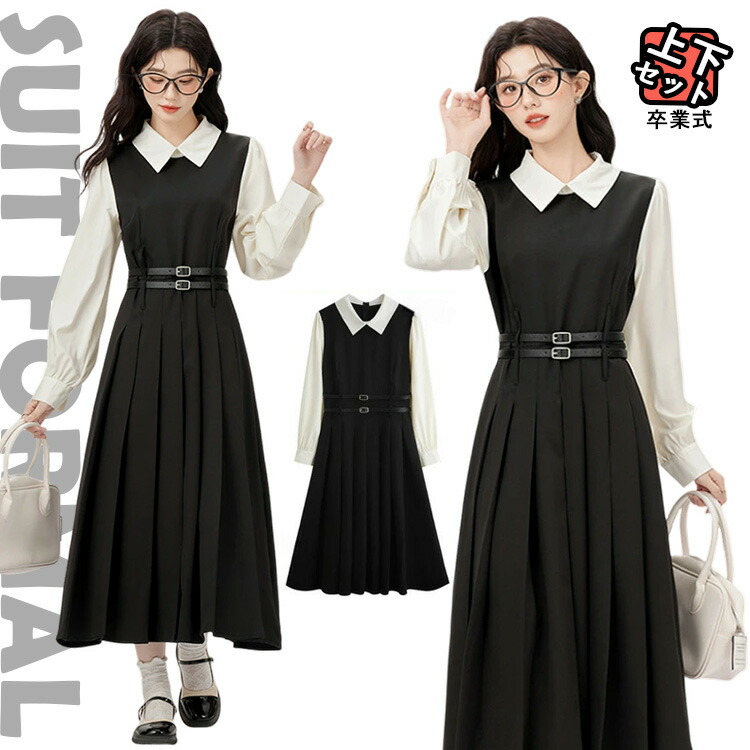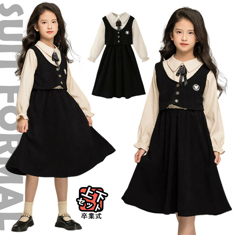 卒業式 スーツ 女の子 卒服 ワンピース 韓国 なんちゃって制服 黒 ブラック 小学生 高校生 入学式 ピアノ発表会 ワンピーススーツ 女子 中学生 長袖 演奏会 ドレス フェイクレイヤー