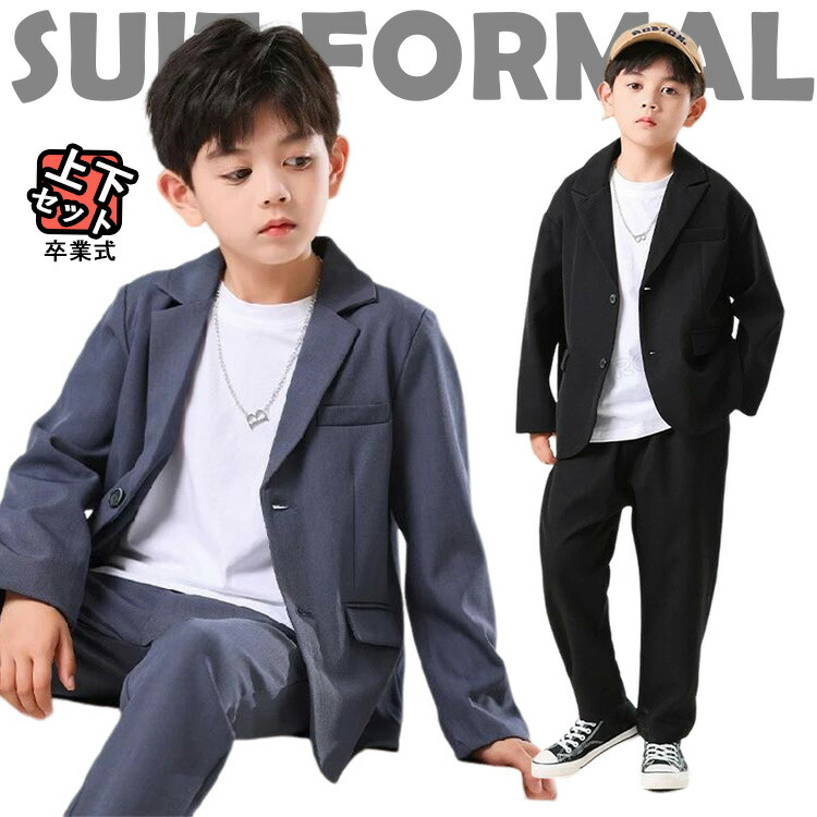 卒業式 スーツ 男の子 160 卒服 韓国 制服 小学生 体 入学式 ピアノ発表会 パンツスーツ 黒 なんちゃって制服 ブレザー 2点セット 入園式 ゆったり 子供 フォーマルスーツ 大きい