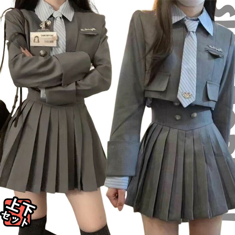 なんちゃって制服 韓国 制服 卒業式 スーツ レディース 女の子 セット ブレザー ジャケット ブラウス スカート 卒服 グレー プリーツスカート 長袖 スーツコート ストライプ レディー