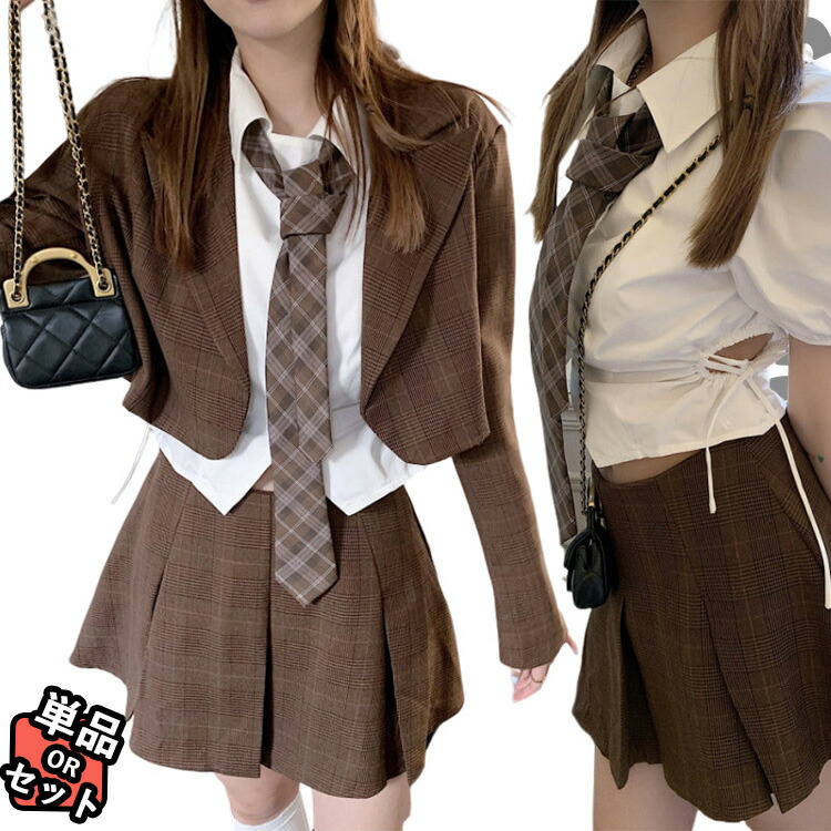 なんちゃって制服 韓国 制服 卒業式 スーツ レディース 女の子 高校生 セット チェック ブレザー ジャケット ブラウス スカート 卒服 ブラウン 長袖 スーツコート レディース ジュニ