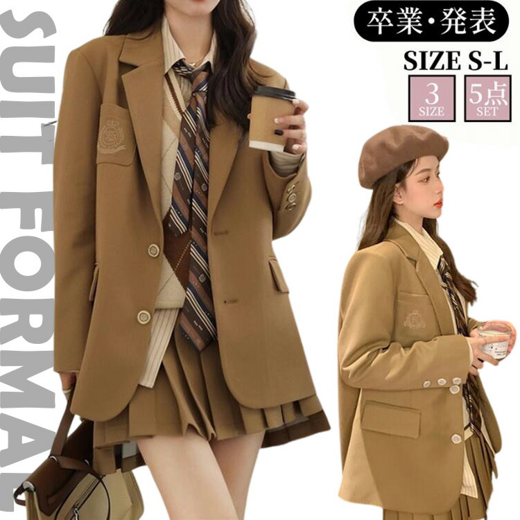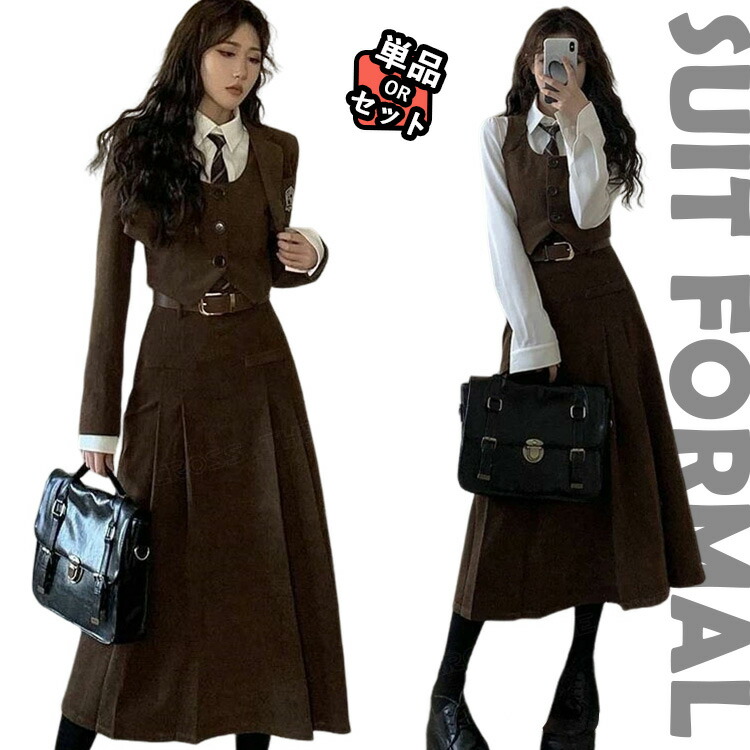 なんちゃって制服 韓国 制服 セット レディース 高校生 卒業式 スーツ 女の子 卒服 ジャケット ベスト ブラウス スカート ロング ブレザー ブラウン 長袖 スーツコート ジュニア 中学