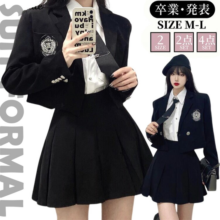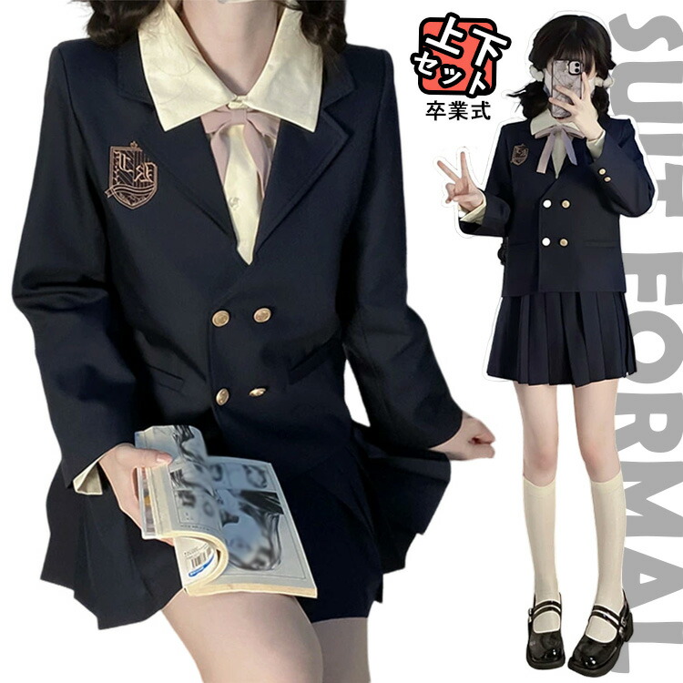 なんちゃって制服 スーツ 女の子 卒業式 紺 韓国 制服 ネイビー セット ブレザー 卒服 160 ジャケット ブラウス スカート ブラック 長袖 スーツコート プリーツスカート 白シャツ ジ