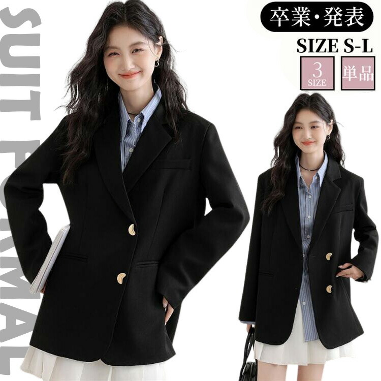 ジャケット レディース フォマール スーツ ブレザー コート 黒 ブラック シンプル 無地 卒業式 入学式 スーツ 体型カバー 母親 ママ 20代 30代 おしゃれ セレモニー スーツ きれいめ