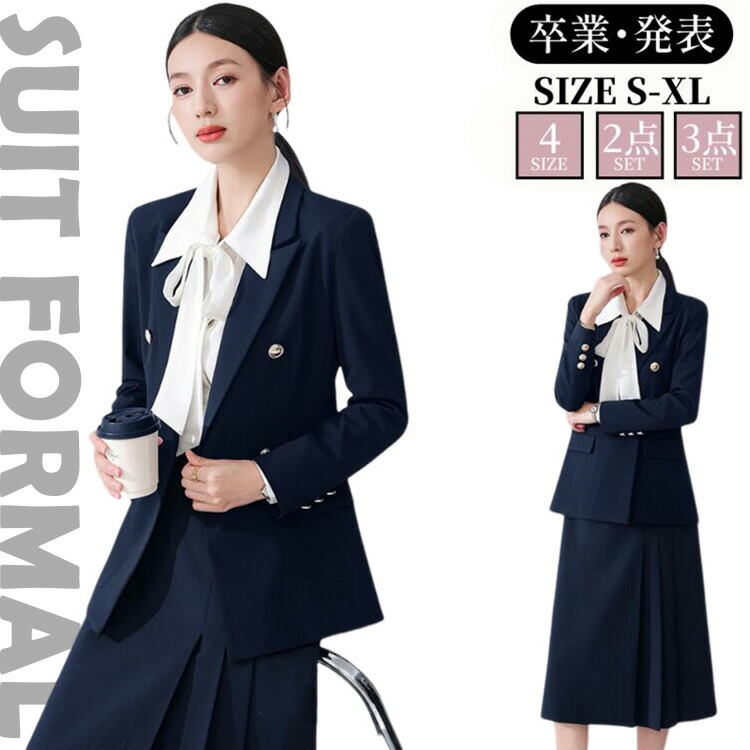 スーツ ブレザー 3点セット ブレザー コート シャツ スカート 紺色 白 ネイビー ホワイト リボーン 無地 卒業式 入学式 スーツ 母親 ママ 20代 30代 おしゃれ 面接 結婚式 発表会 春