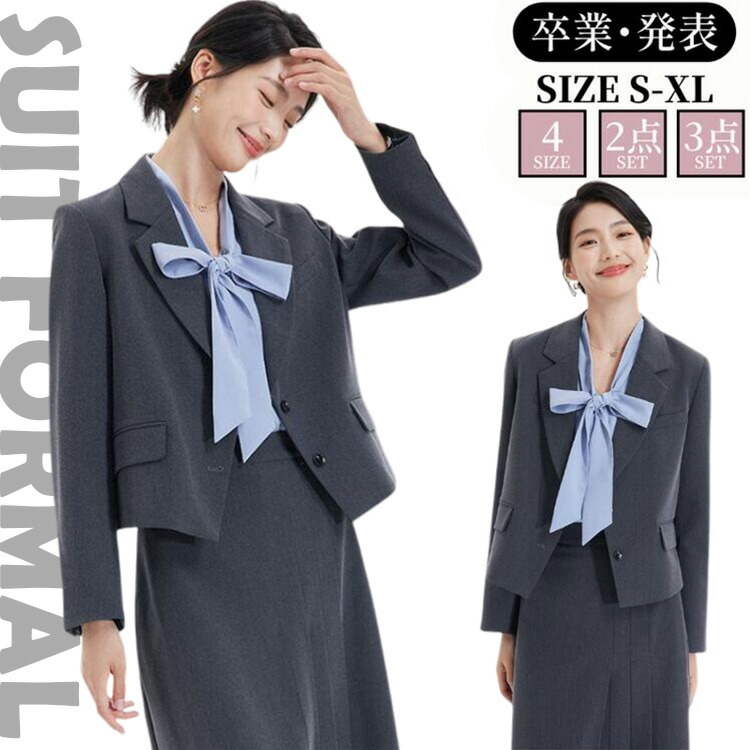 スーツ ブレザー 3点セット ブレザー コート シャツ スカート 体型カバー 卒業式 入学式 スーツ 灰色 青 グレー ブルー リボーン 無地 母親 ママ 20代 30代 おしゃれ 面接 結婚式 発