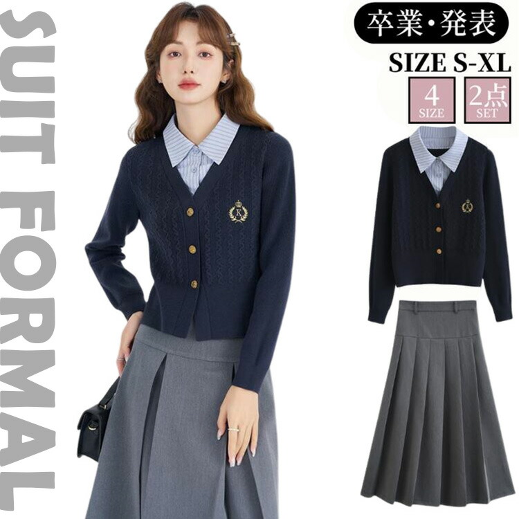入学式 卒業式 スーツ 制服 2点セット トップス スカート 重ね着風 ロング丈 学生服 面接 発表会 通学 お受験 女の子 女子高生 スクール おしゃれ 春 秋 冬 中学生 高校生 紺 青 ネイ