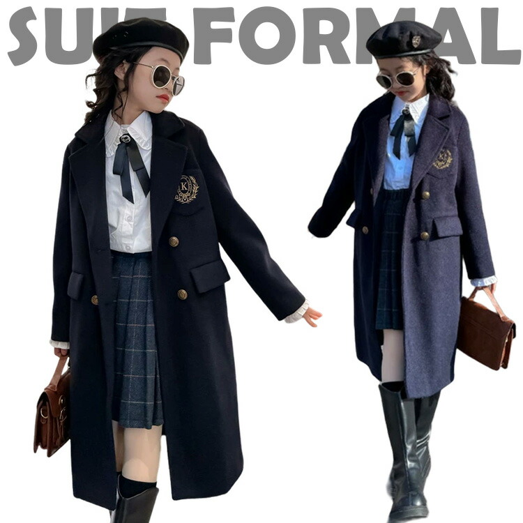 卒業式 スーツ 女の子 紺 小学校女子 コート スクールコート 大きいサイズ 150 160 ジャケット ロング 入学式 卒服 ピアノ発表会 韓国 フォーマル 子供 長袖 子供服 発表会 キッズ
