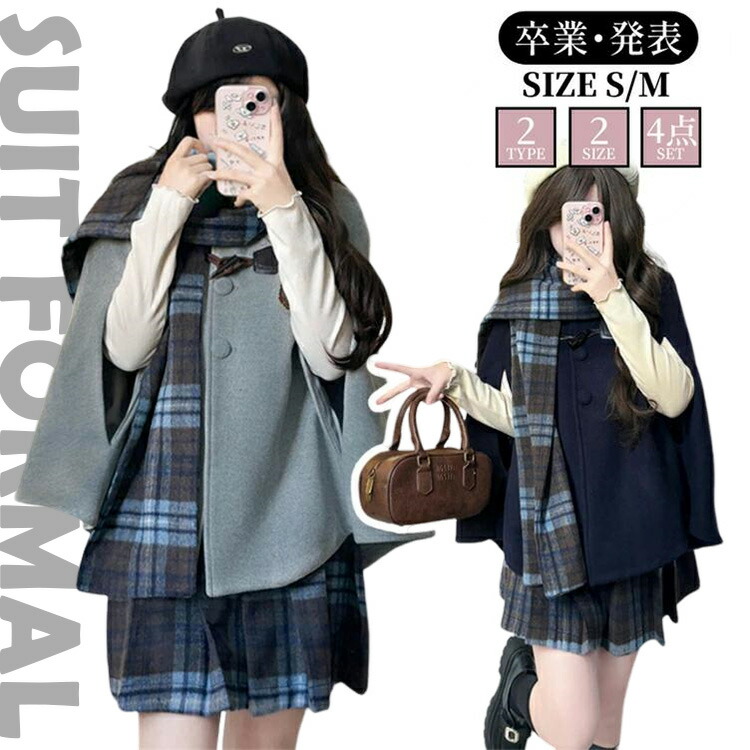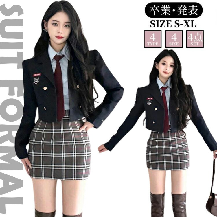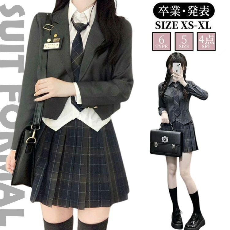卒業式スーツ 4点セット 制服 卒業式 JK セットアップ チェック柄 女の子 長袖 ブレザー 中学生 高校生 レディース スーツ セット お受験 学園祭 冠婚葬祭 結婚式 演奏会 子供服 発表