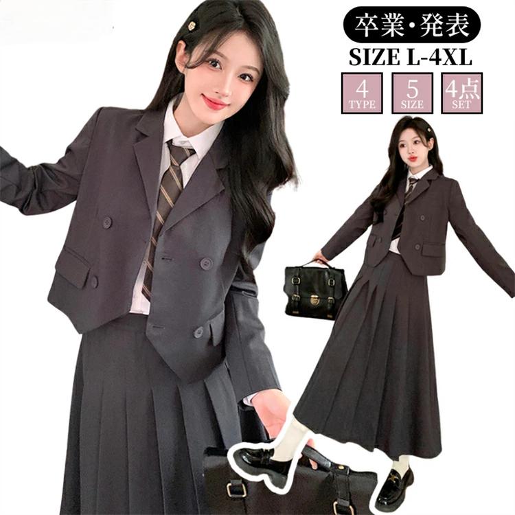 卒業式スーツ 制服 4点セット 卒業式 レディース セットアップ ブレザー ジャケット セット 大きいサイズ おしゃれ 子供服 通学 中学生 高校生 スーツ フォーマルスーツ 女の子 演奏