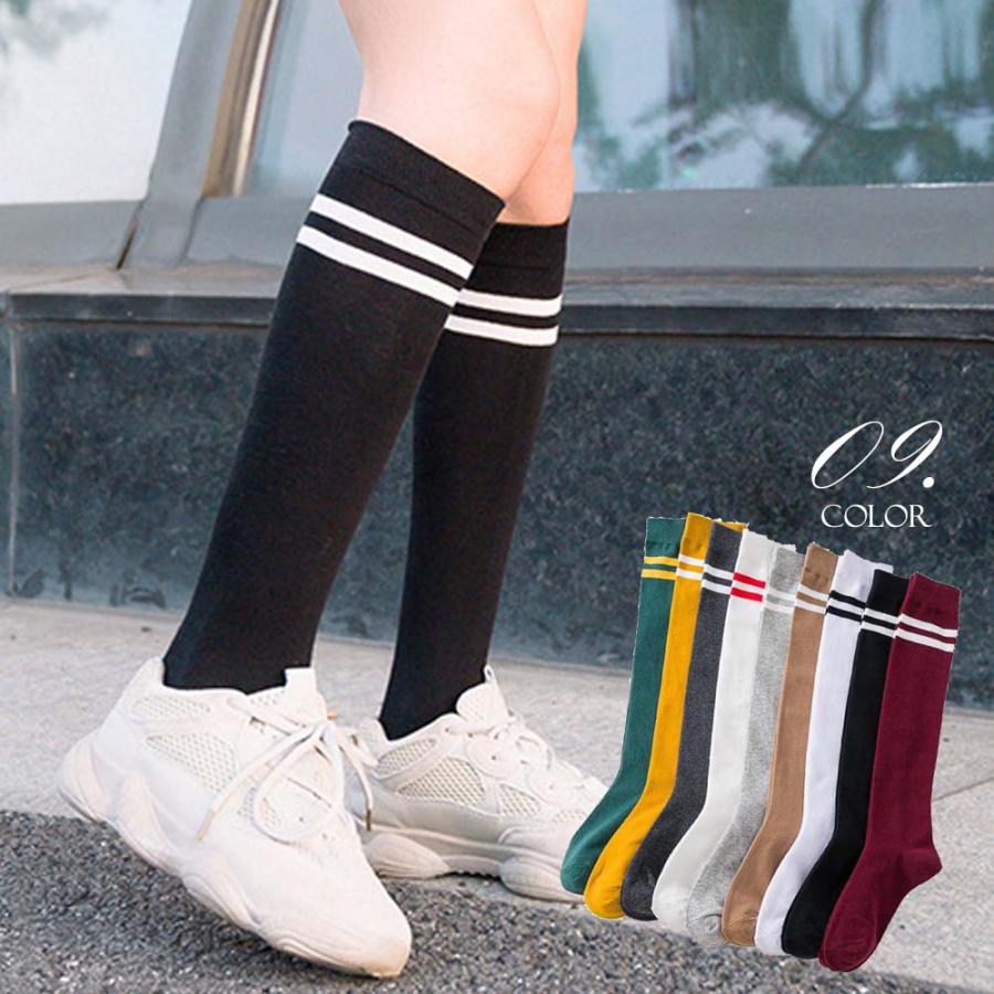 ハイソックス レディース 2本ライン 靴下 綿 ボーダー ロングソックス 通学 靴下 無地スポーツ アウトドア テニス レディースウェア ソックス