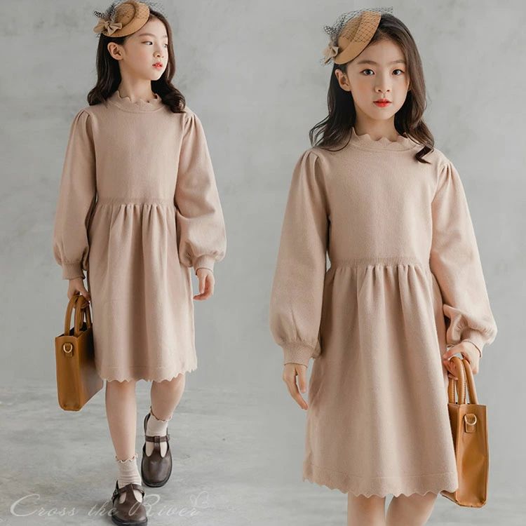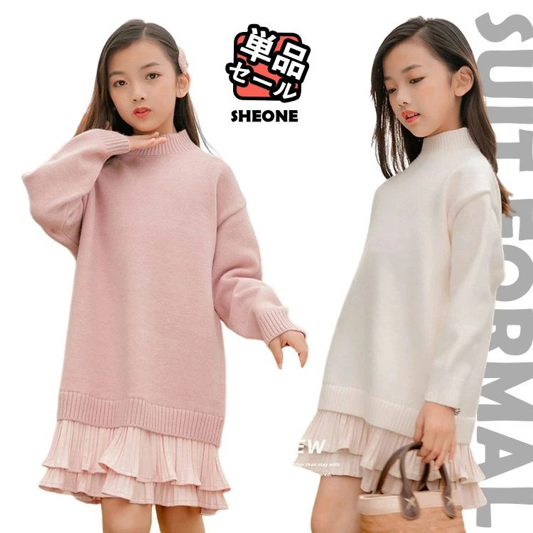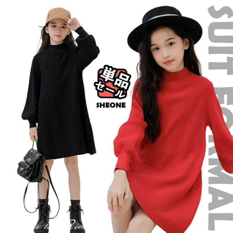 卒業式 インナー 女の子 ニット 大きいサイズ 160 170 ワンピース ピアノ発表会 入学式 小学生 ハイネック フォーマル 長袖 無地 韓国 子供 ジュニア 膝丈 発表会 キッズ 卒服 お受験