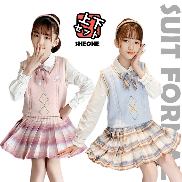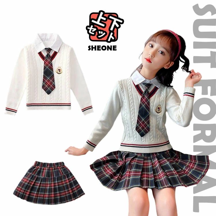 卒業式 スーツ 女の子 小学生 韓国 制服 160 ニット ベスト チェック柄 スカート 入学式 シャツ フォーマル 子供 長袖 子供 発表会 ピアノ発表会 キッズ 卒服 お受験 女の子 フォーマ