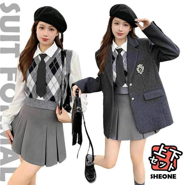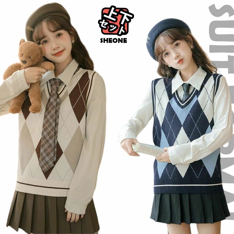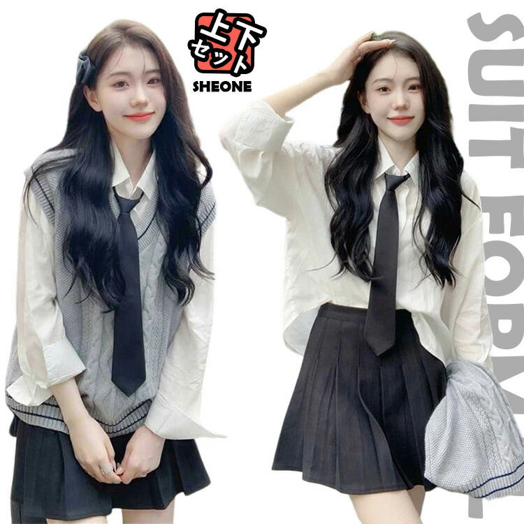 韓国 制服 4点セット 卒業式 スーツ 女の子 160 なんちゃって制服 セット 卒服 女の子 ピアノ発表会 中学生 高校生 小学生 入学式 発表会 卒業式 白シャツ ニットベスト ネクタイ プ