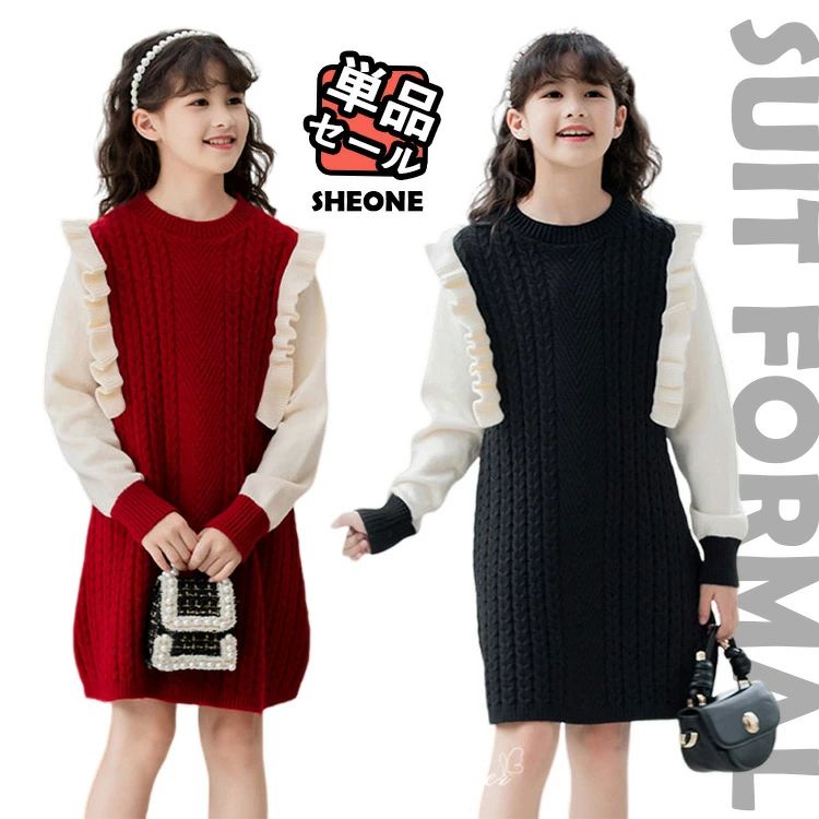 卒業式 女の子 ニット ワンピース 160 スーツ 入学式 女の子 ピアノ発表会 ドレス 小学生 長袖 冬 赤 ブラック ジュニア フォーマル スーツ 子供 子供服 発表会 キッズ 卒服 ワンピー