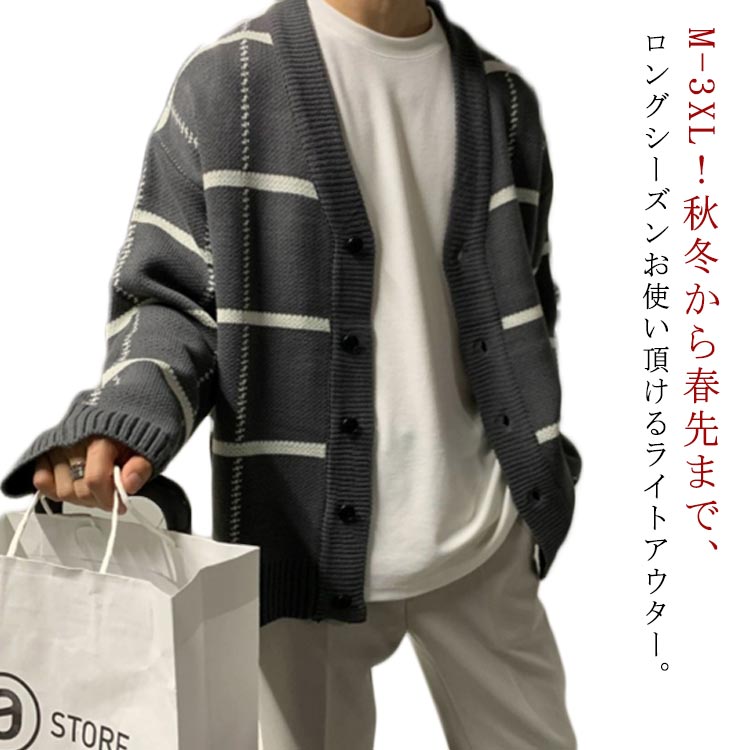 チェック柄 ゆったり 前開き 羽織り Vネック ニットカーデ アウター メンズ ニット カーディガン 体型カバー