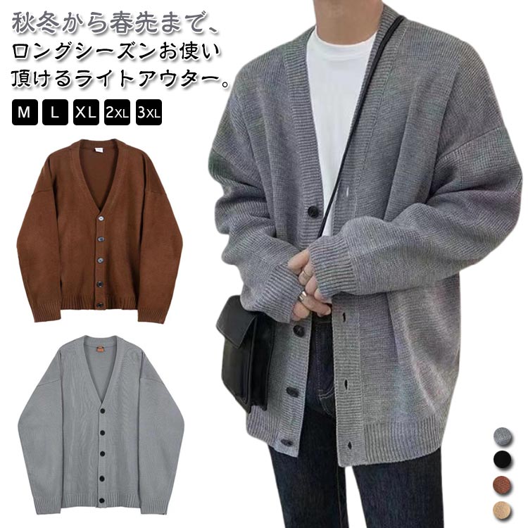 Vネック カーディガン メンズ ニットカーディガン 重ね着 春秋 体型カバー 羽織 アウター カジュアル ゆったり 前開き